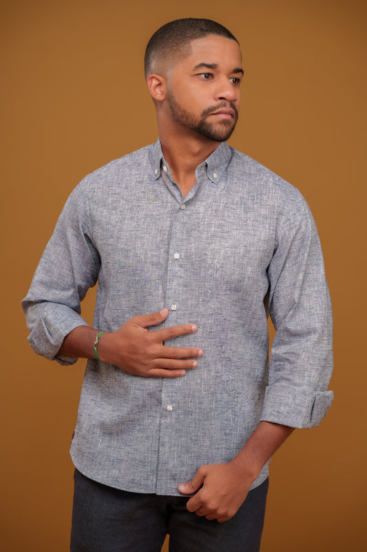 GRAY HEATHER LINEN-COTTON SHIRT