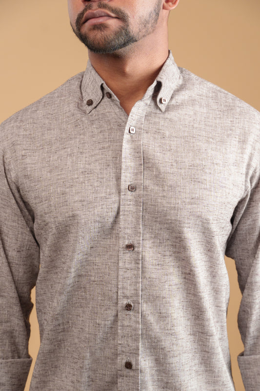 BROWN HEATHER LINEN-COTTON SHIRT