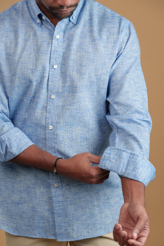 BLUE HEATHER LINEN-COTTON SHIRT