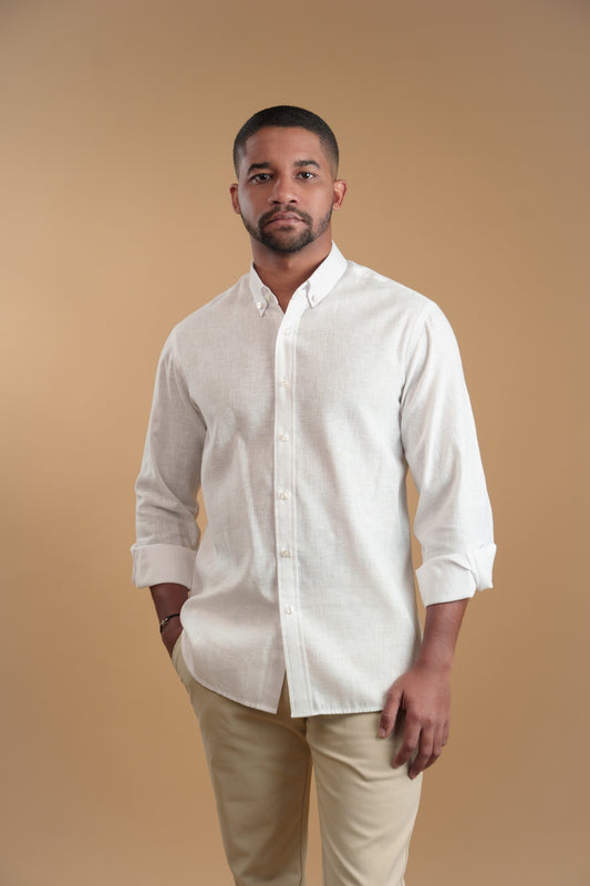 WHITE LINEN-COTTON SHIRT