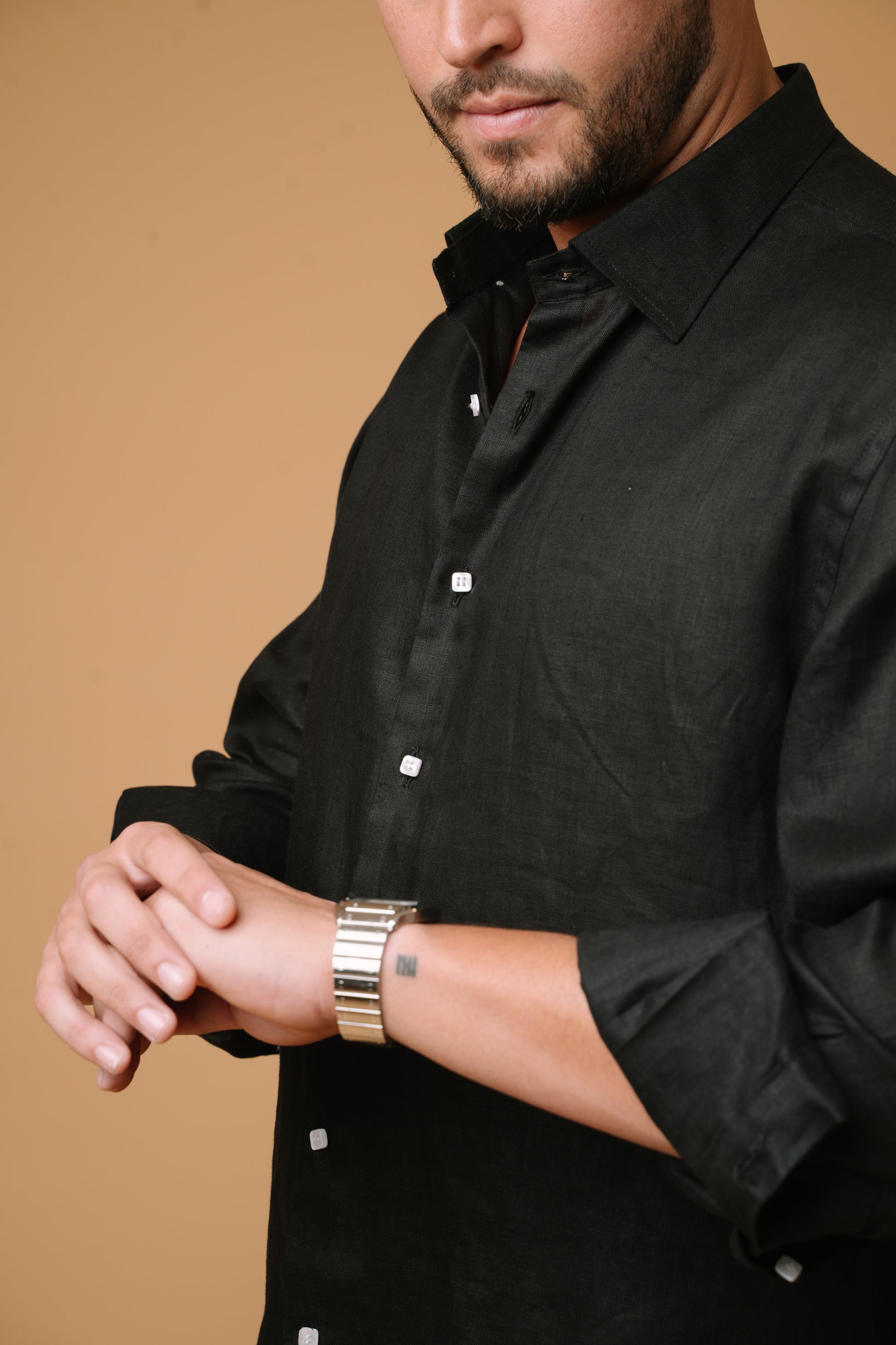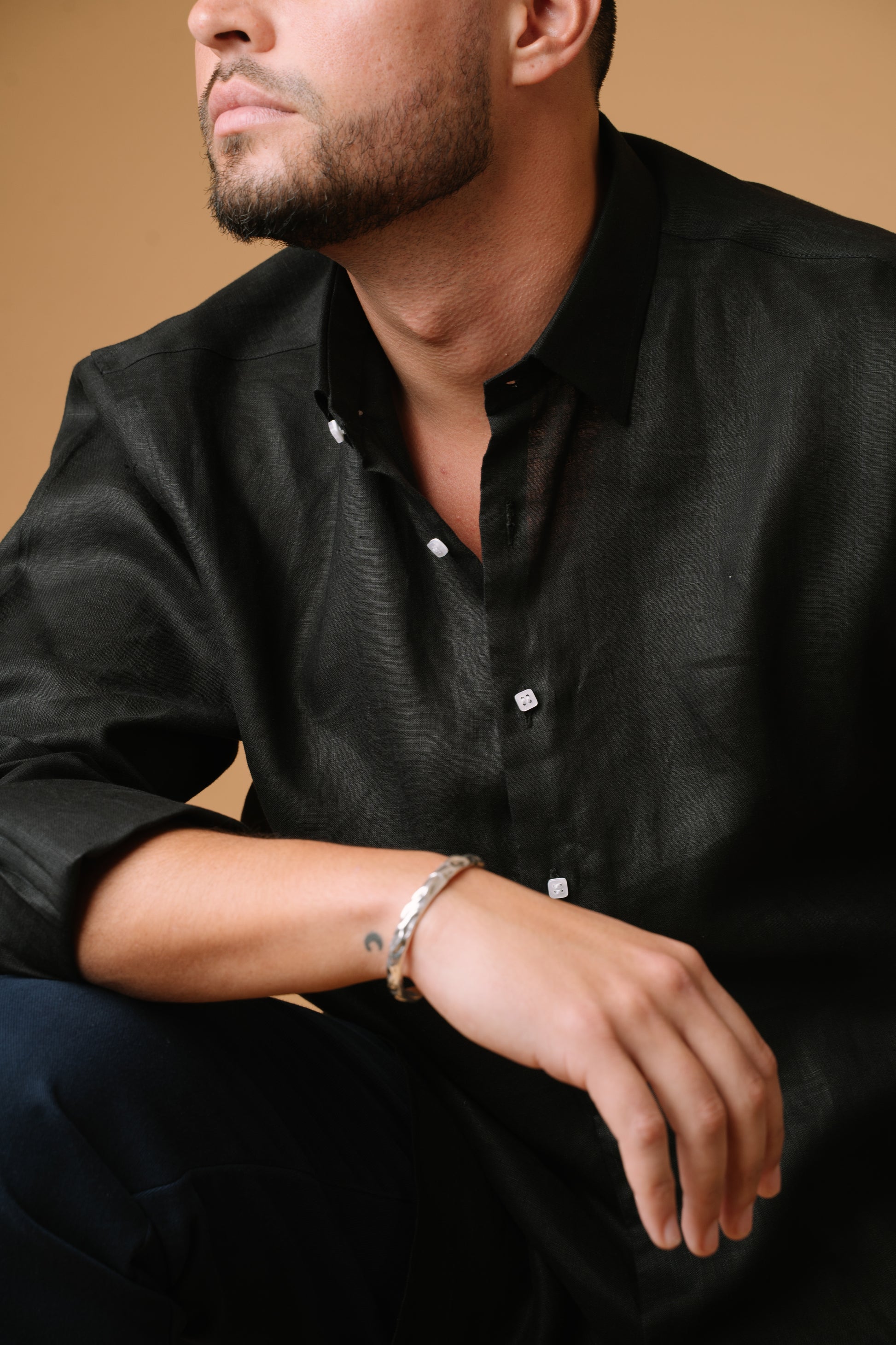 Our BLACK Linen Shirt is designed for effortless elegance, combining natural breathability with a refined, relaxed silhouette. Lightweight and softly textured, it transitions seamlessly from warm daytime wear to evening settings.
