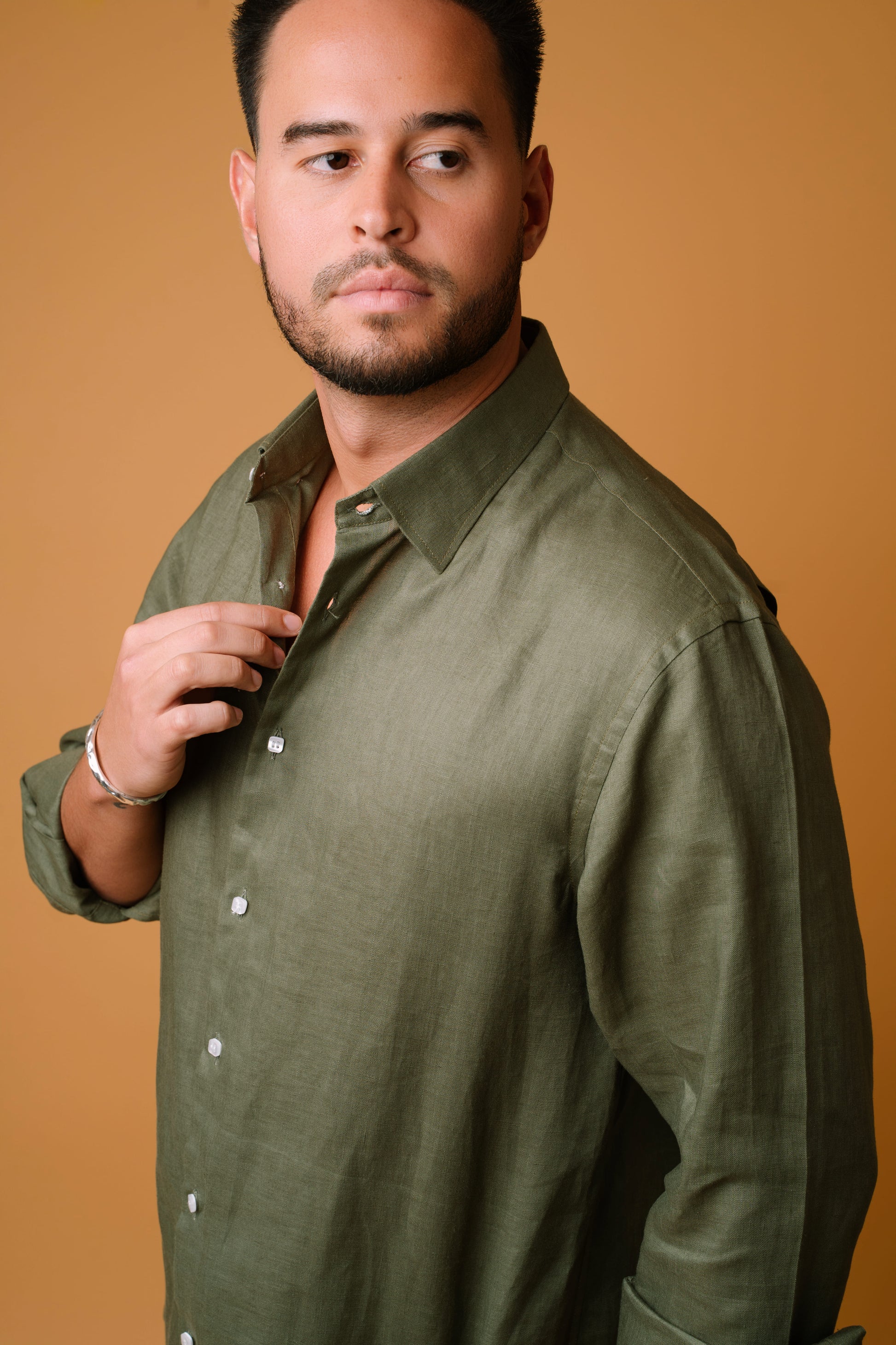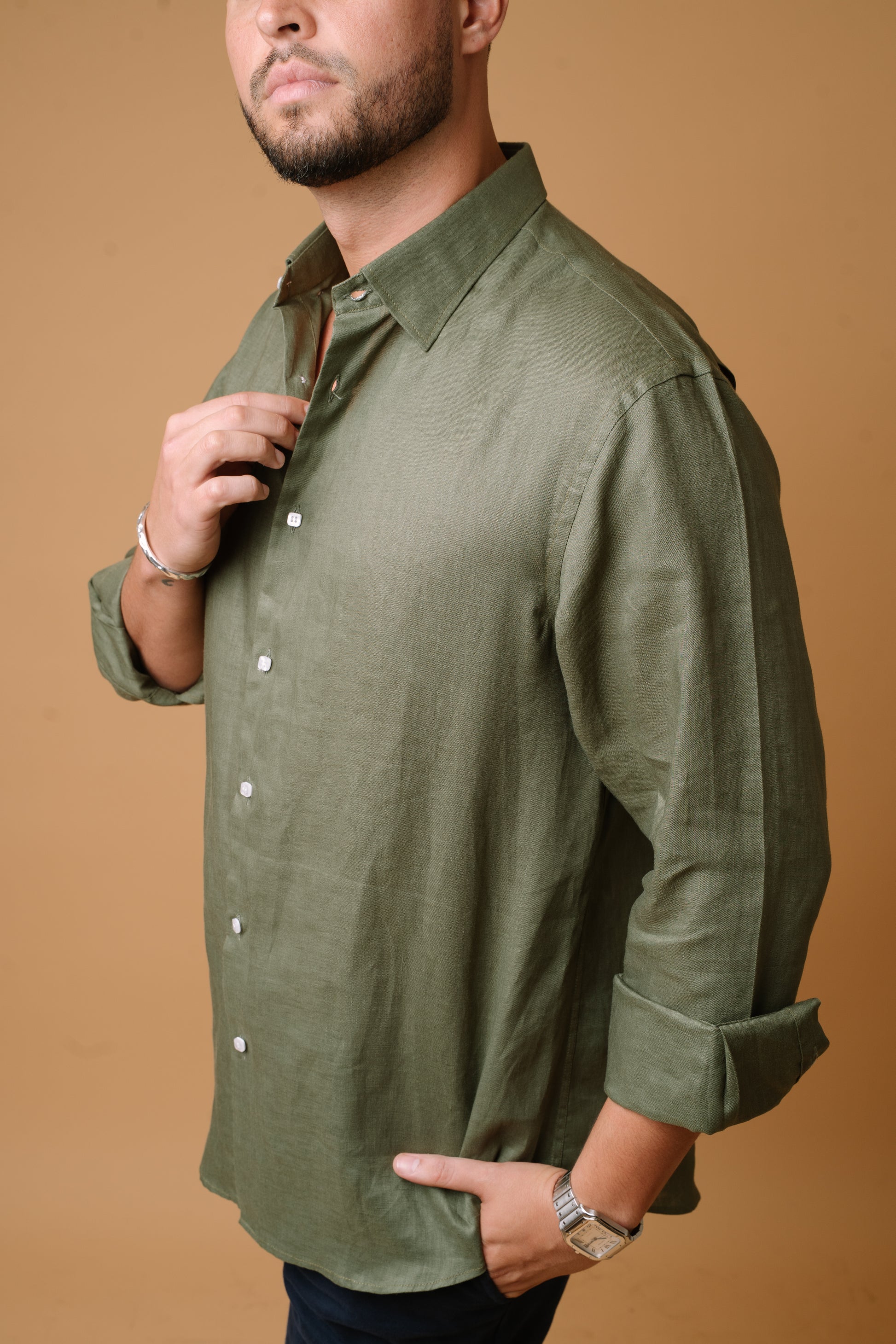 Our DARK GREEN Linen Shirt is designed for effortless elegance, combining natural breathability with a refined, relaxed silhouette. Lightweight and softly textured, it transitions seamlessly from warm daytime wear to evening settings.