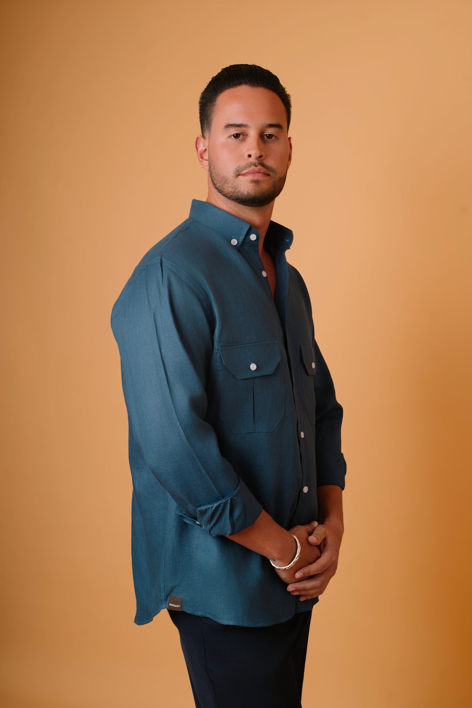 Designed with hidden collar buttons for a clean, structured finish, and available in long or short sleeves, with the option of one or two chest pockets. Personalize it with custom initials for a distinctive, elevated touch.